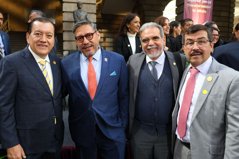 El evento contó también con la presencia del secretario de Educación Pública, Mario Delgado Carrillo; la secretaria de Ciencias, Humanidades, Tecnología e Innovación, Rosaura Ruiz Gutiérrez; el subsecretario de Educación Superior, Ricardo Villanueva Lomelí; y el secretario general ejecutivo de la Asociación Nacional de Universidades e Instituciones de Educación Superior (ANUIES), Luis Armando González Placencia, entre otras autoridades.