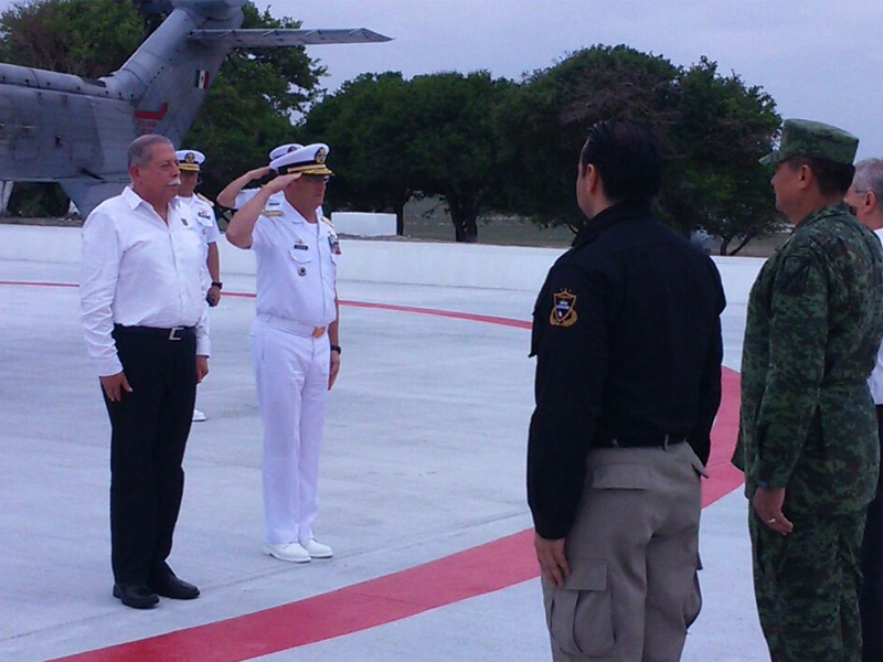 Encabezan este acto el Secretario de Marina, Almirante Vidal Francisco Soberón Sanz y el Gobernador Egidio Torre Cantú, quienes realizan un recorrido por las instalaciones navales que también constan de una guardia de prevención, comandancia, áreas de alojamiento masculino y femenino, comedores, estación de radio, entre otras.
