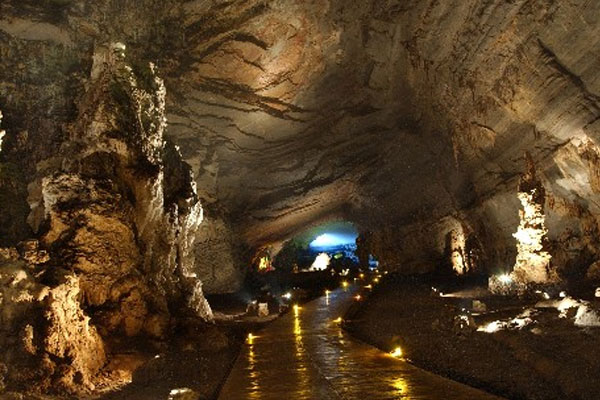 Al interior le espera un fantástico recorrido de 2 kilómetros a lo largo de un sendero iluminado de manera artificial, ya que es imposible que la luz natural llegue a este sitio dónde las formaciones rocosas forman caras, animales y objetos que se pueden apreciar claramente, como en los Salones del Chivo, el trono, la fuente, la catedral o la tan característica botella.