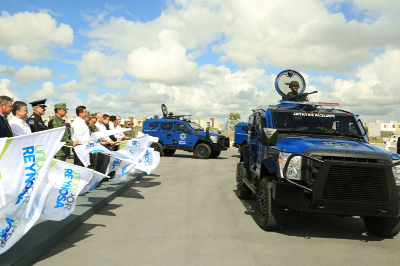 Cuatro de los vehículos blindados entregados hoy se integrarán a un grupo de fuerzas especiales de la Policía Estatal que operará en el municipio de Reynosa.