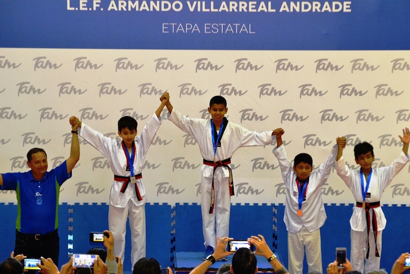 Cd. Victoria, Tam.- Tras concluir la actividad del tae kwon do de Juegos Deportivos Nacionales Escolares de la Educación Básica 2018-2019 denominados “L.E.F. Armando Villarreal Andrade”, los primeros lugares y boletos a la fase final nacional fueron repartidos a los representativos de las 8 regiones que comprende Tamaulipas.